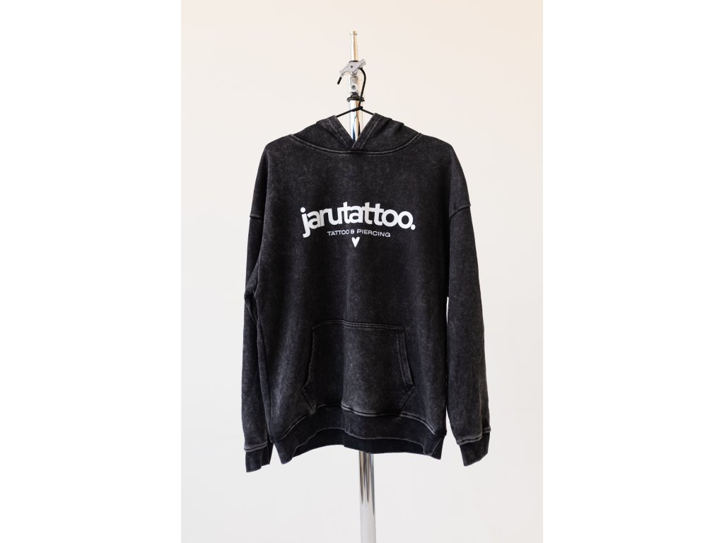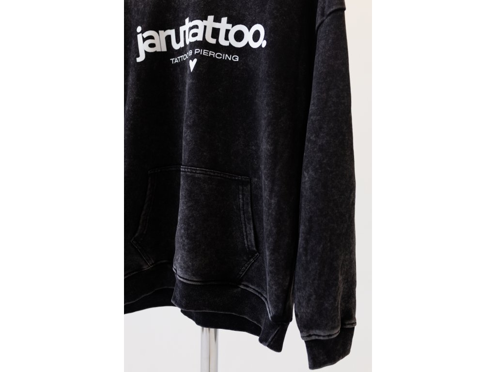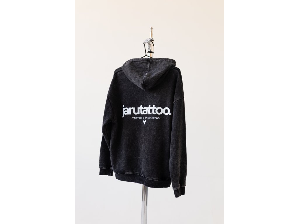 Tmavě šedá mikina s kapucí. Pohodlná, volná a skvělá na každý den.