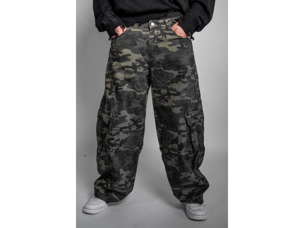 Tyto unisex oversize maskáčové kalhoty spojují maximální pohodlí s moderním streetwearovým stylem. Díky širokému střihu poskytují volnost pohybu a ležérní look, zatímco praktické kapsy dodávají outfitu funkční prvek. Vyrobené z odolného materiálu, ideální pro každodenní nošení. Široký střih a univerzální design z nich činí ideální volbu pro každého, kdo hledá kombinaci stylu a komfortu.