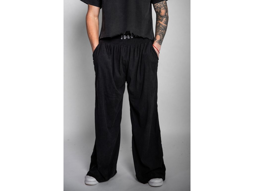 Unisex černé manšestrové kalhoty