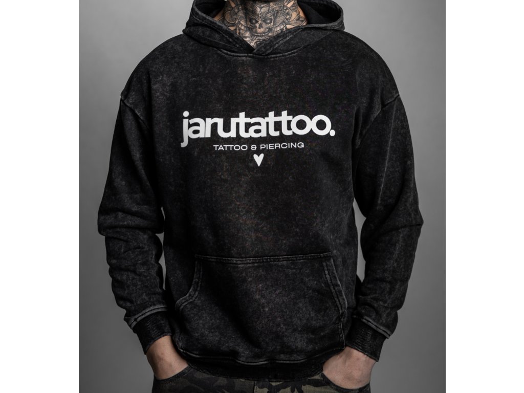 Tmavě šedá mikina s kapucí. Pohodlná, volná a skvělá na každý den.