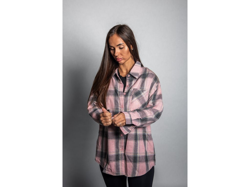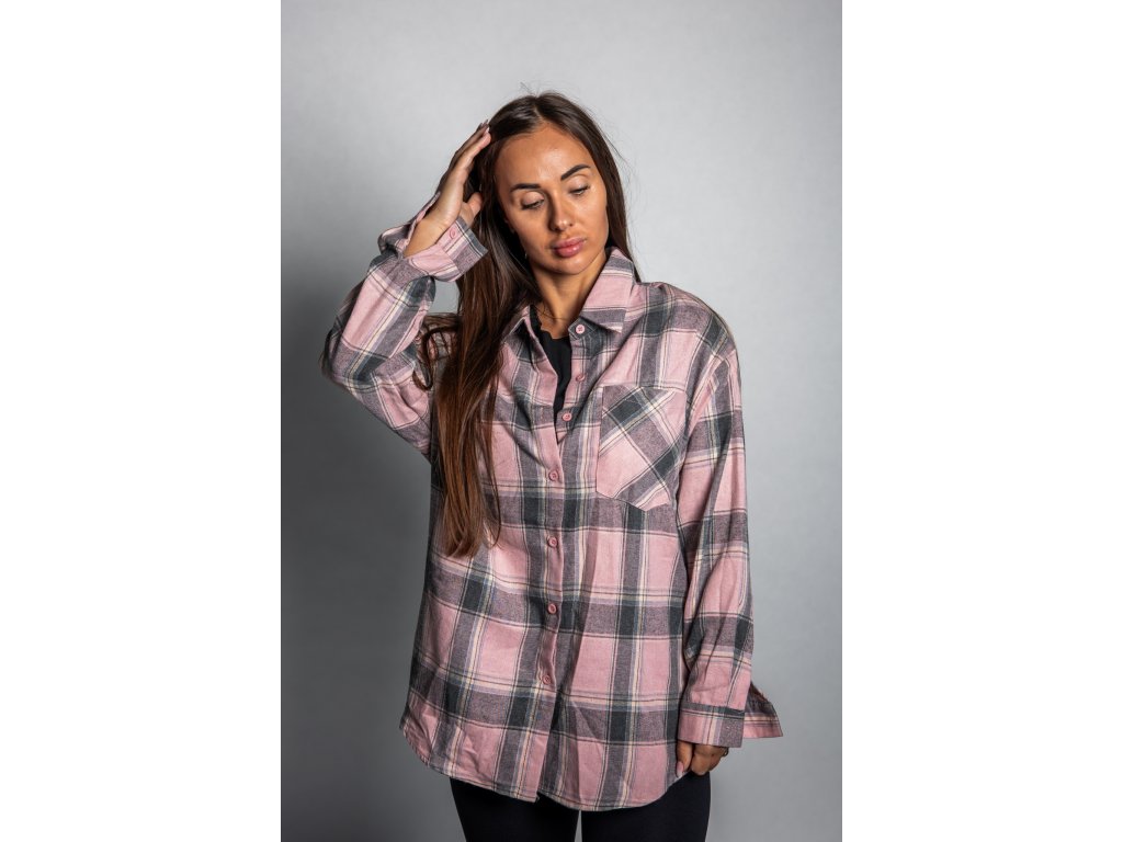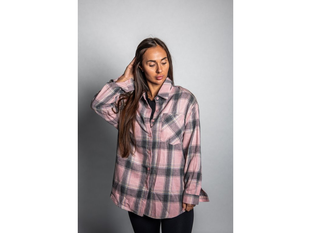 Dámská dlouhá kostkovaná růžová košile – stylová, pohodlná a ideální pro každodenní nošení.