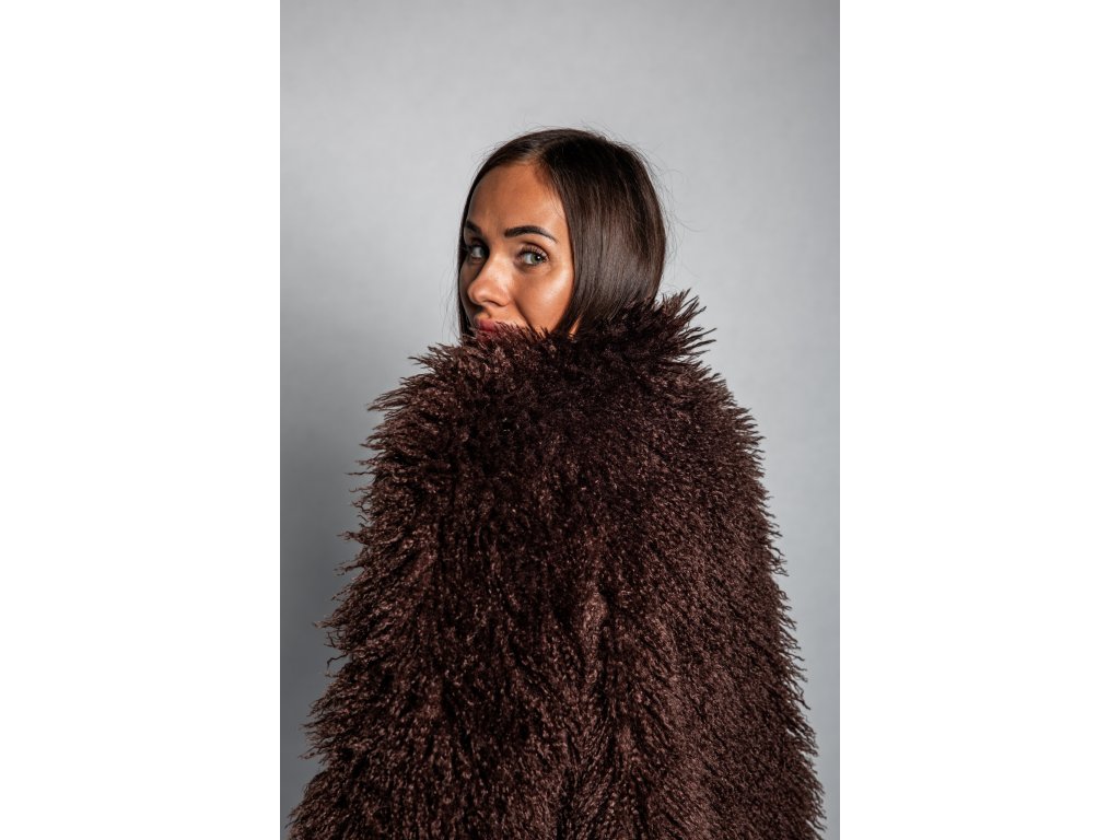 Tmavě hnědý kožešinový kabátek