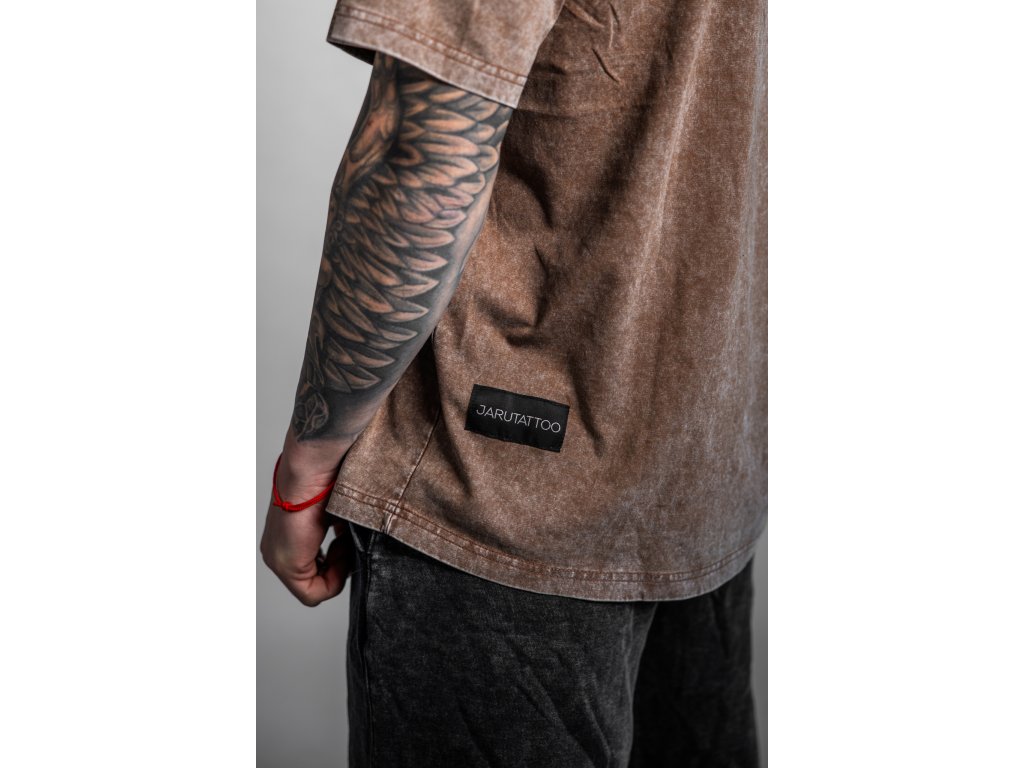 Volné hnědé seprané tričko – pohodlné, stylové a nadčasové pro každodenní nošení.